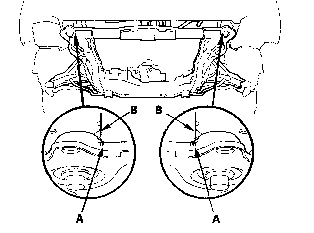 48. Note the reference marks (A) on both sides of the subframe that line up with the body (B).