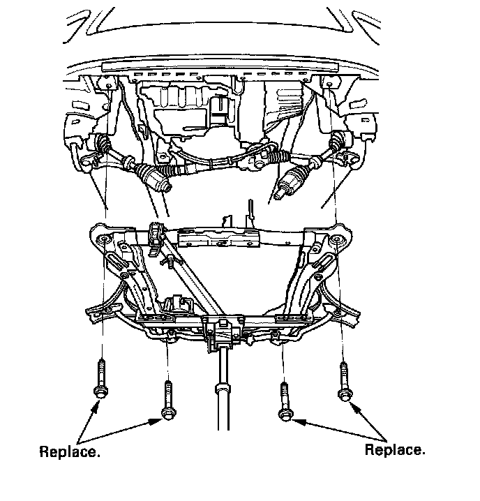 60. Slowly lower the engine/transmission assembly about 150 mm (6 inch). Check once again that all hoses and electrical wiring are disconnected and free from the engine/transmission, then lower it all the way.