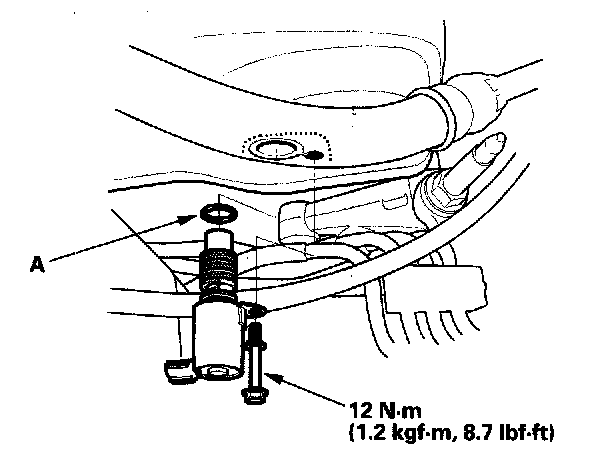 9. Coat a new O-ring (A) with engine oil, then install it.