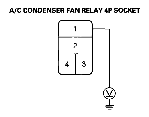 3. Measure the voltage between the A/C condenser fan relay 4P socket terminal No. 1 and body ground.
