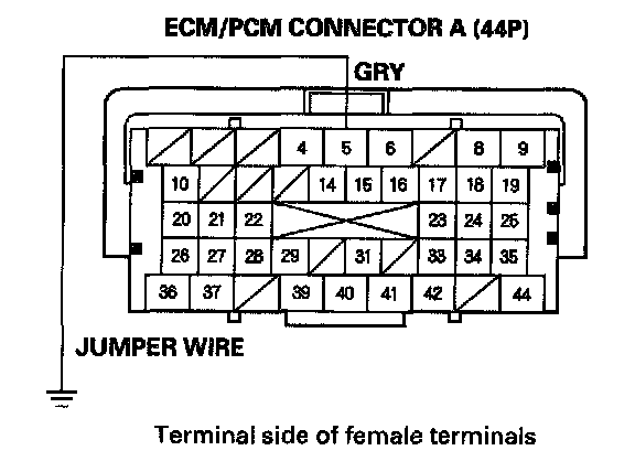11. Connect the ECM/PCM connector A (44P) terminal No. 5 to body ground with a jumper wire.