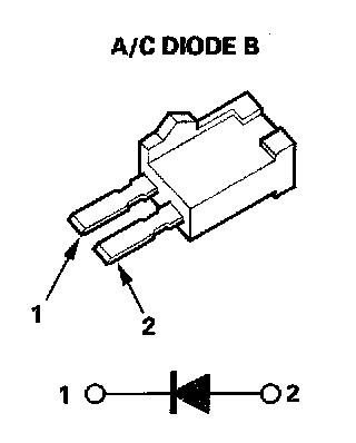 16. Using the diode setting (-><-) on a DVOM, check for current flow in both directions between the A/C diode B terminals No. 1 and No. 2.