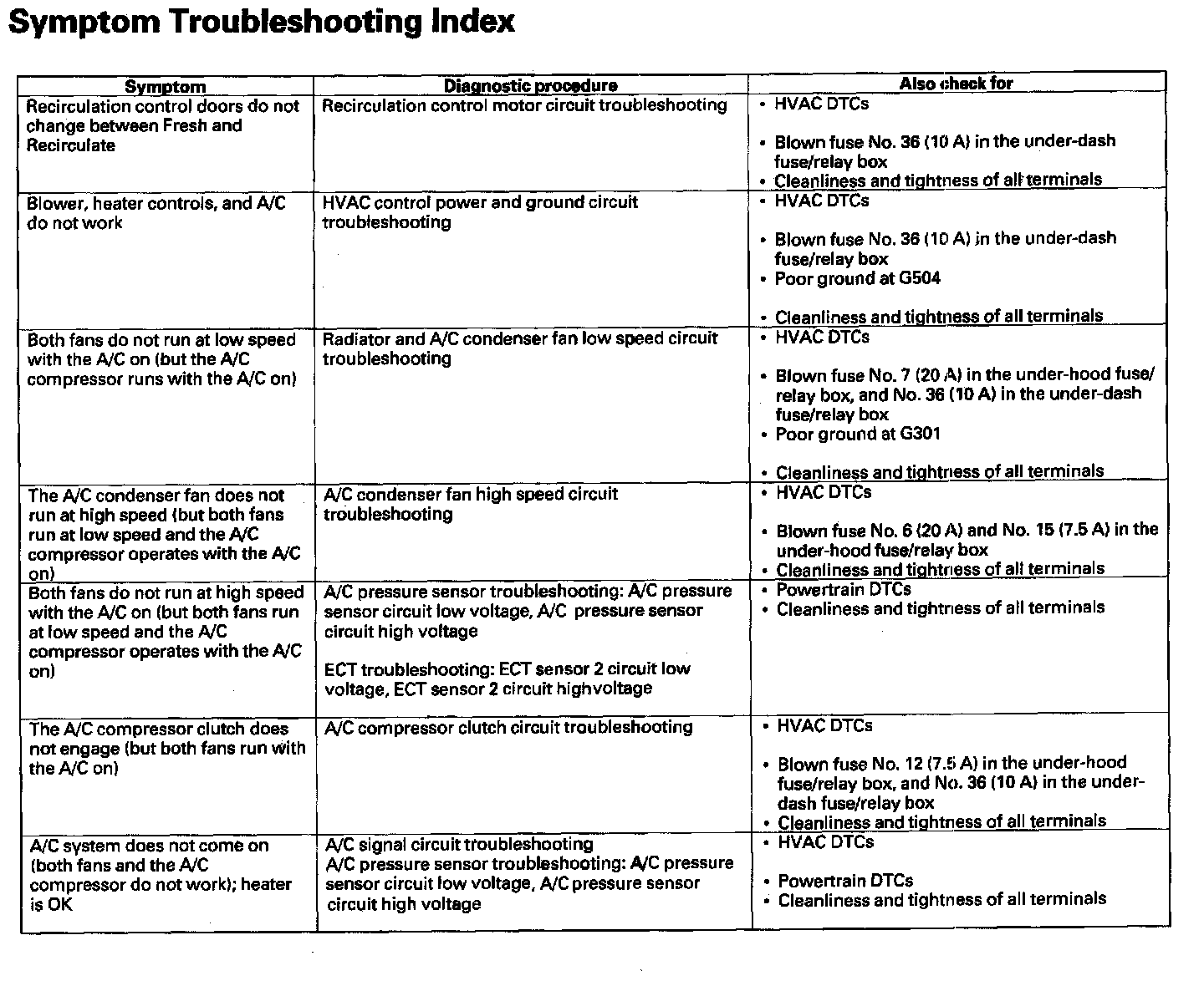 Symptom Troubleshooting Index: