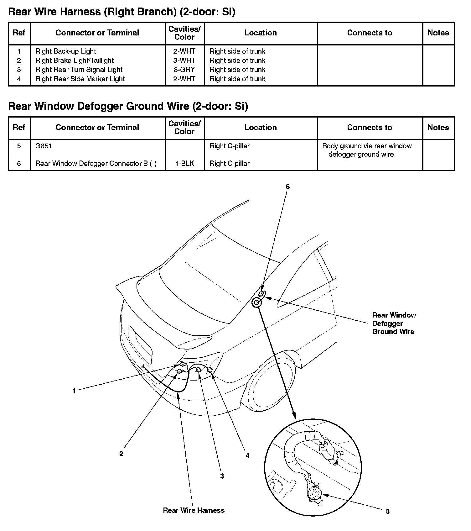 Rear Wire Harness (Right Branch) (2-door: Si)/Rear Window Defogger Ground Wire (2-door: Si):