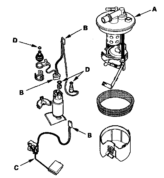 - When installing the fuel gauge sending unit (C), make sure the connection is secure and the connector is firmly locked into place. Be careful not to bend or twist it excessively.