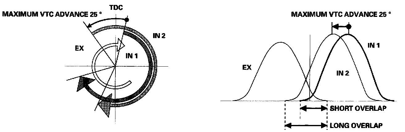 - The VTC system makes continuous intake valve timing changes based on operating conditions.