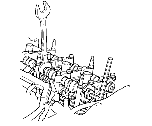 3. Hold the camshaft with an open-end wrench, then loosen the bolt.