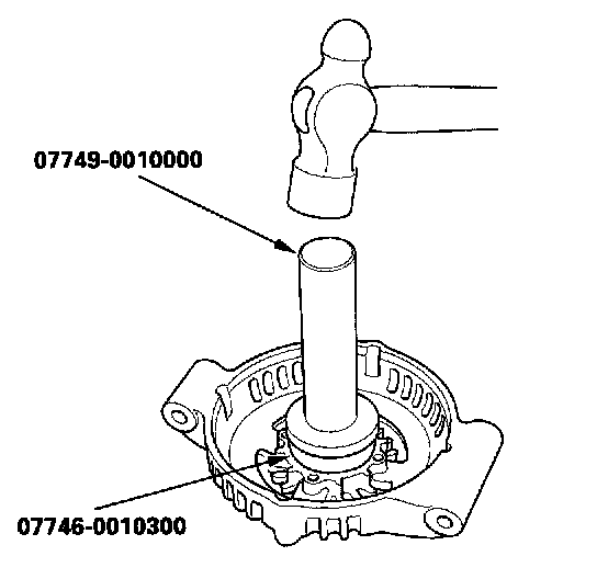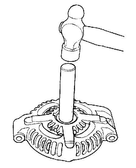 12. With a hammer and special tools, install a new front bearing in the drive end housing.