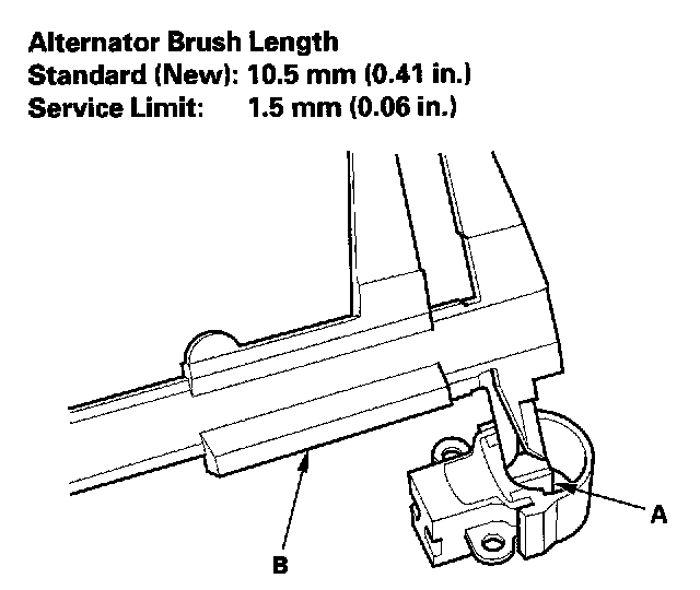 - If either brush is shorter than the service limit, replace the brush holder assembly.