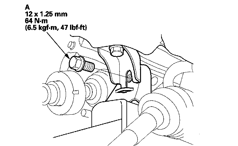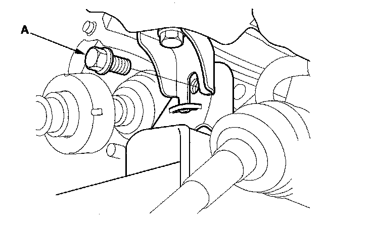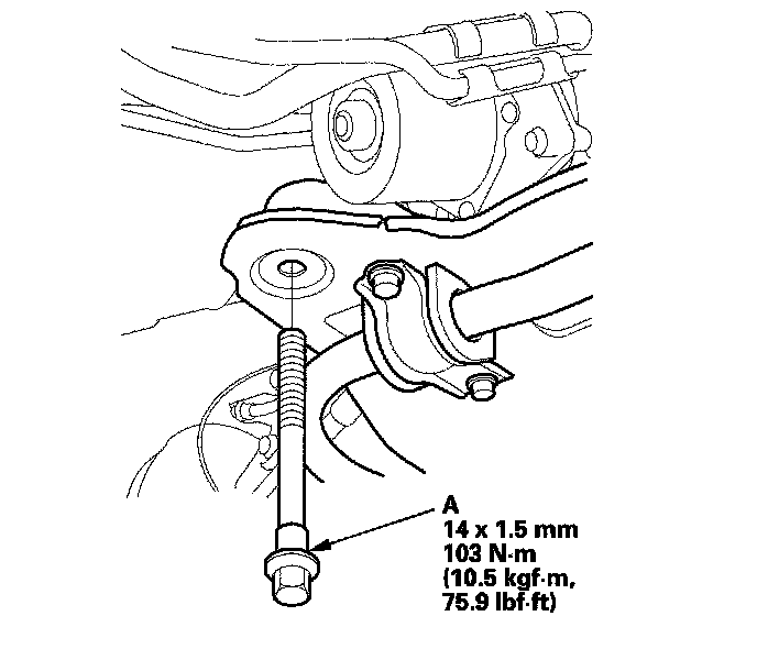 16. Install the new front subframe middle mount bolt (A) on the left side, and tighten it to the specified torque.
