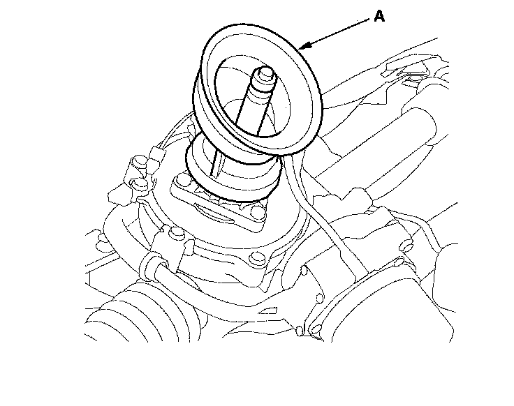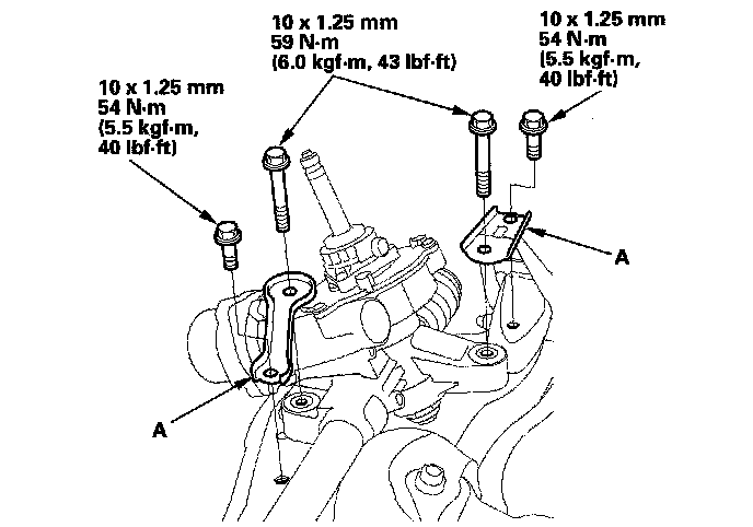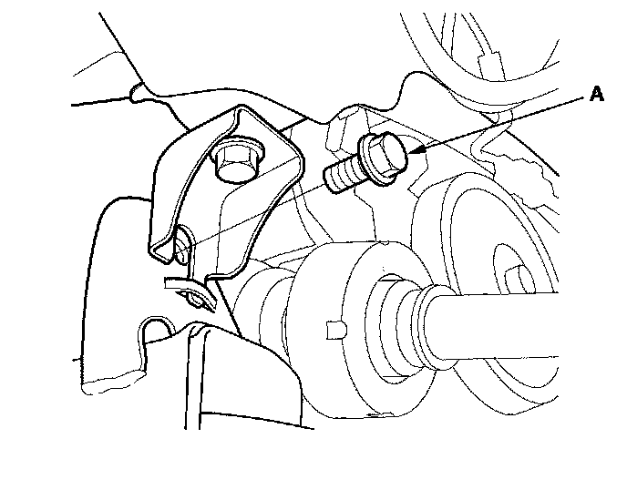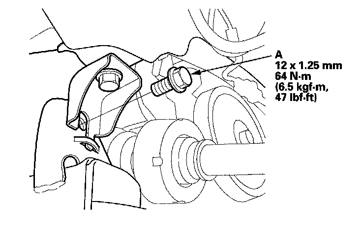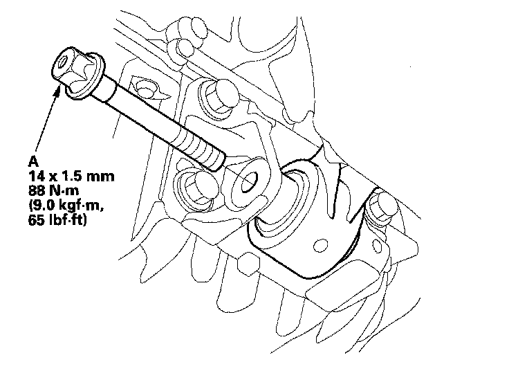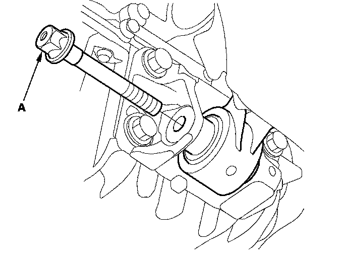 15. Install the new lower torque rod bracket bolt (A), and tighten it to the specified torque.