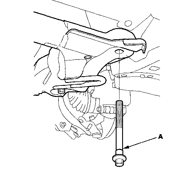 24. Remove the lower, torque rod mounting bolt (A) and discard it.