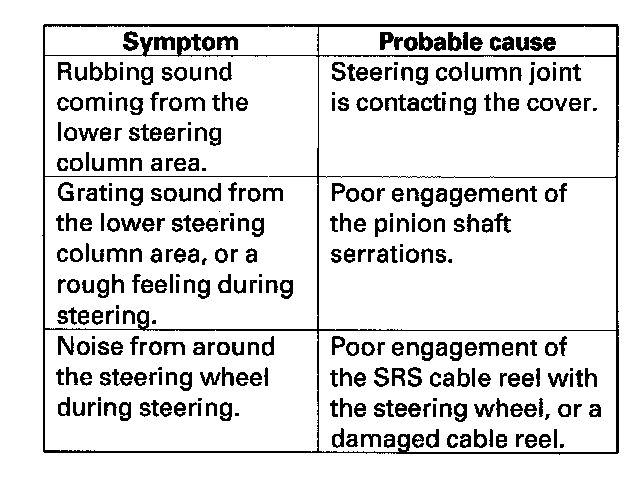 Note these items during removal: Use solvent and a brush to wash any oil and dirt off the end of the steering gearbox. Avoid any electrical parts. Blow dry with compressed air. Make sure to remove the steering wheel before disconnecting the steering joint to avoid damaging the cable reel.