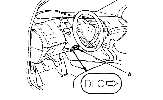 1. With the ignition switch OFF, connect the HDS to the data link connector (DLC) (A) located under the dash on the driver's side of the vehicle.