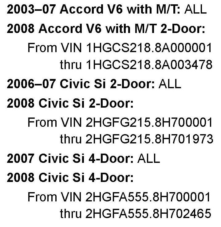 See VEHICLES AFFECTED