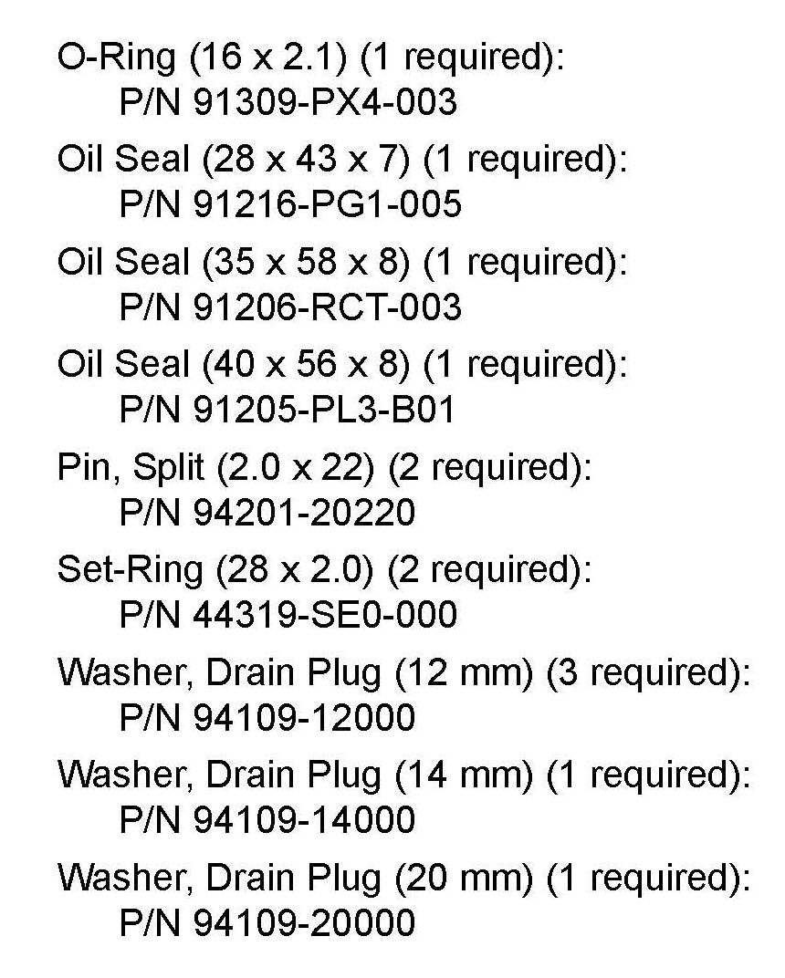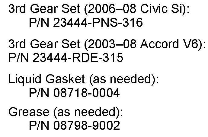 The following parts must be replaced when replacing the third gear set. Refer to the related service manual procedures for the locations of these parts.