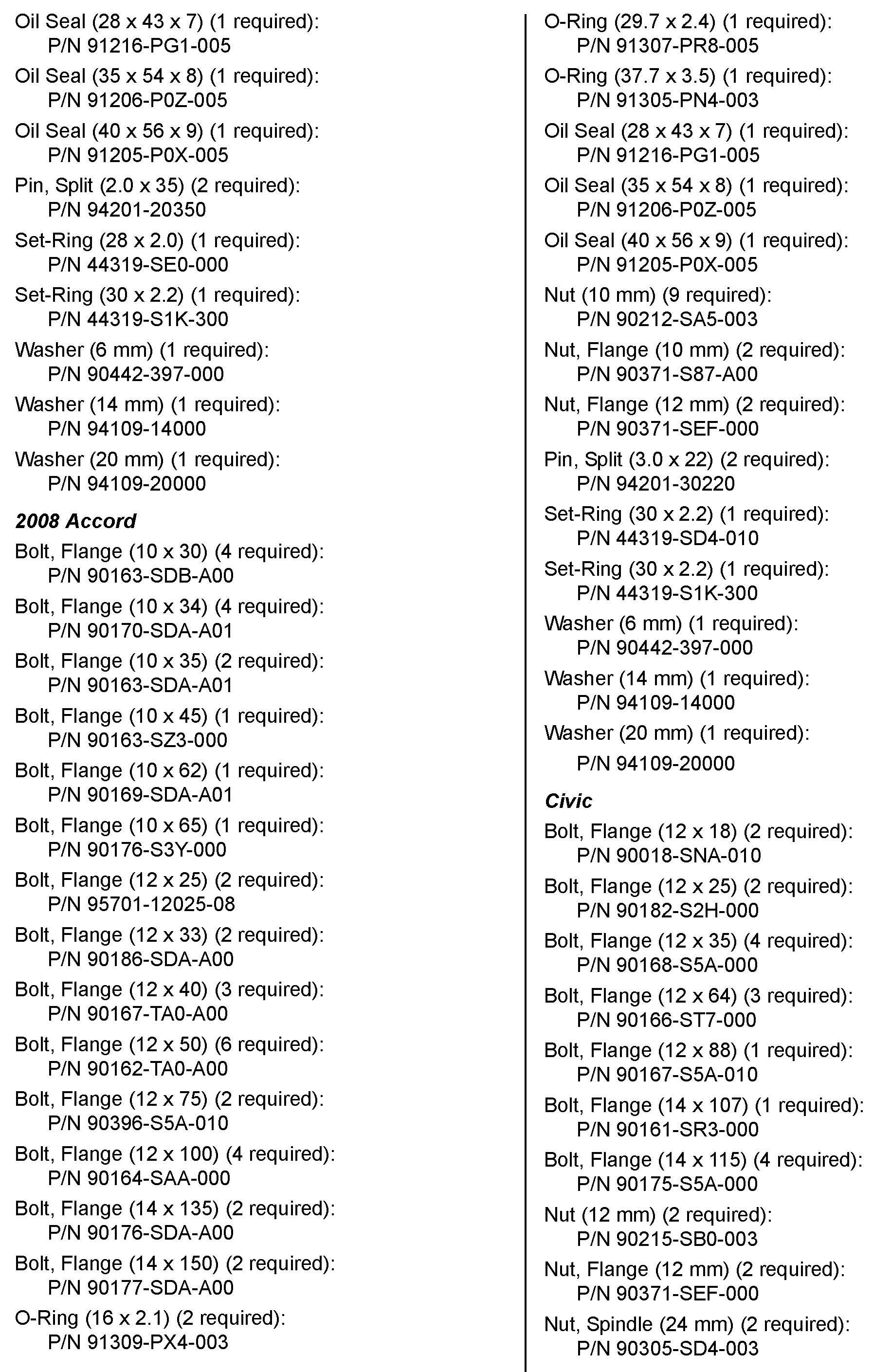 Civic: 1.8 qt. required