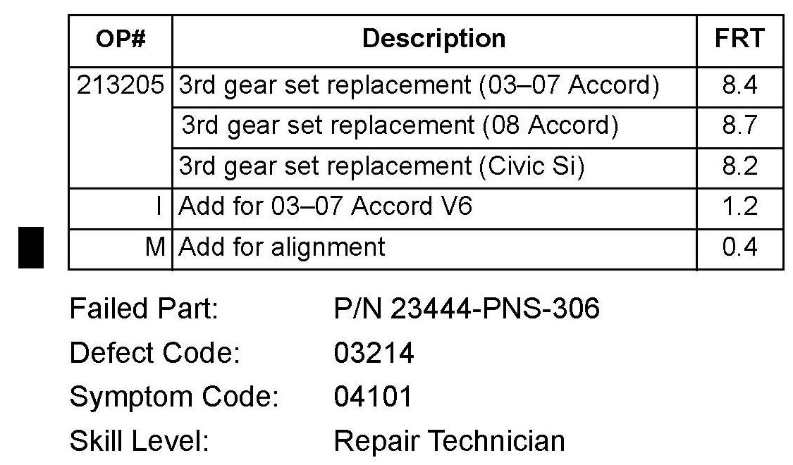 Failed Part: P/N 23444-PNS-306