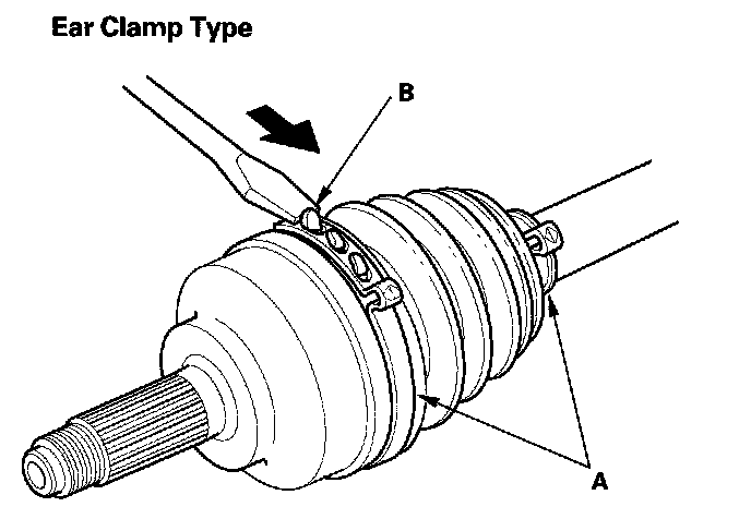 ^ If the boot band is a welded type (A), cut the boot band (B).