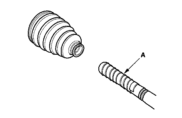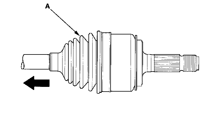 2. Slide the outboard boot (A) partially to the inboard joint side. Be careful not to damage the boot.