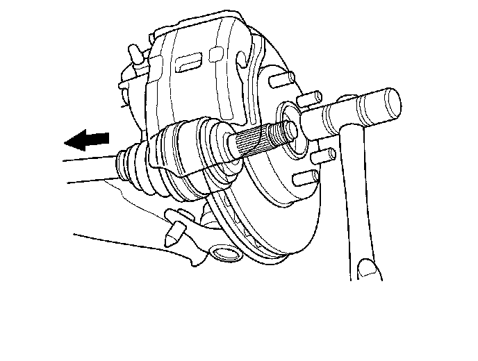 6. Remove the driveshaft outboard joint from the front wheel hub using a plastic hammer.