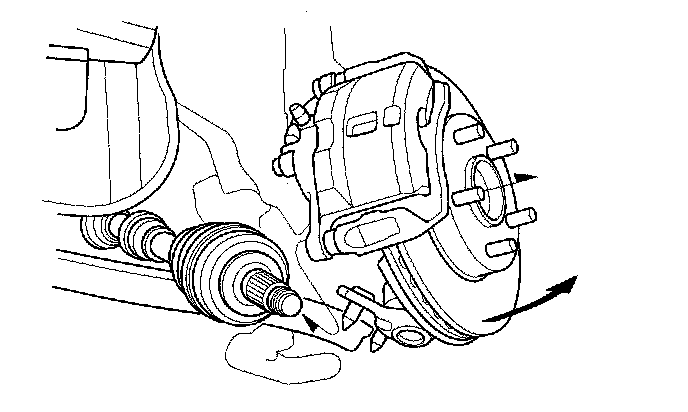 8. Pull the knuckle outward, and remove the driveshaft outboard joint from the front wheel hub.