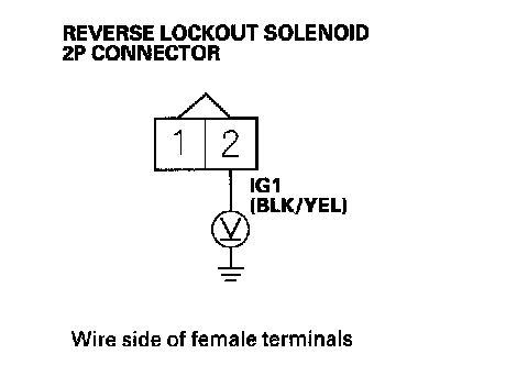 12. Measure the voltage between the reverse lockout solenoid 2P connector terminal No. 2 and body ground.