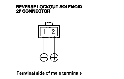 15. Connect the No. 2 terminal of the reverse lockout solenoid 2P connector to the battery positive terminal, and connect the No. 1 terminal to the battery negative terminal. Make sure the reverse lockout solenoid works.