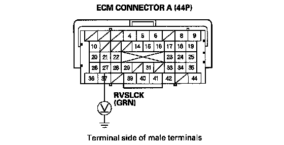 YES - Check for a short to body ground in the GRN/BLK and GRN wire between the reverse lockout solenoid and the ECM (A27). If the wire is OK, substitute a known-good ECM, and recheck.