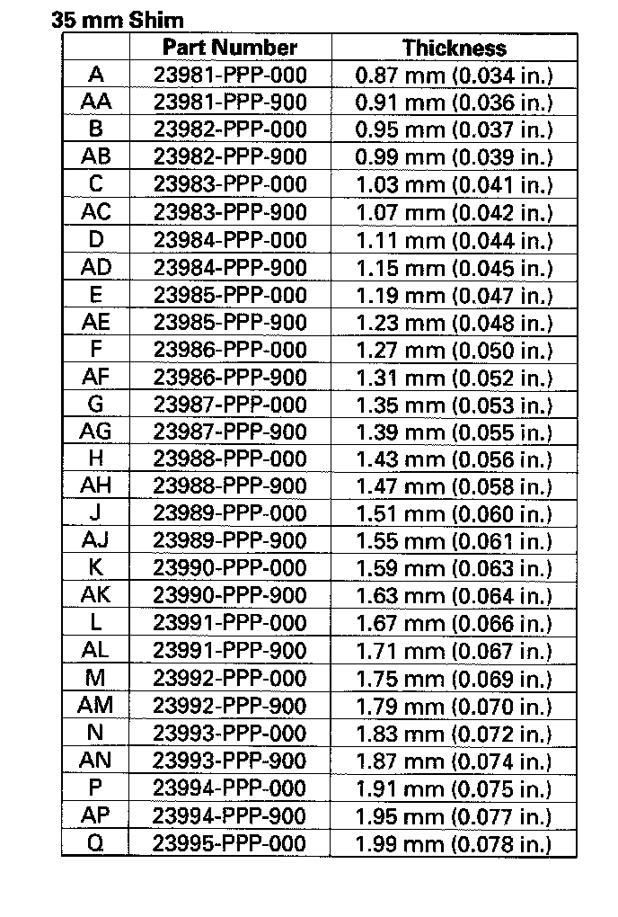 19. If necessary, install the 35 mm shim selected in step 17, then recheck the clearance.