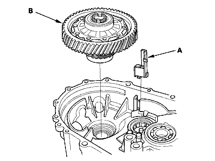 1. Install the magnet (A) and the differential assembly (B).