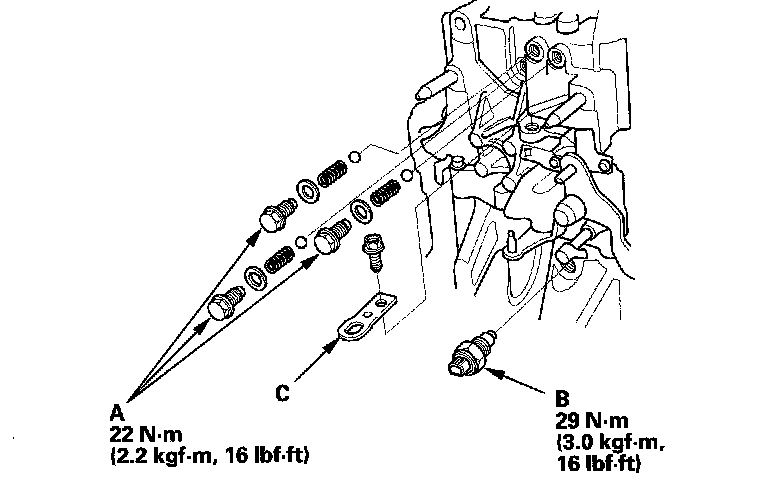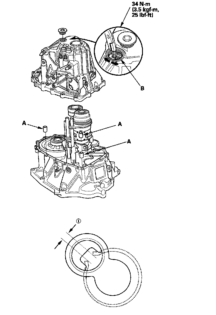 12. Apply liquid gasket (P/N 08718-0002) to the threads of the 32 mm sealing cap (C), and install it on the transmission housing.