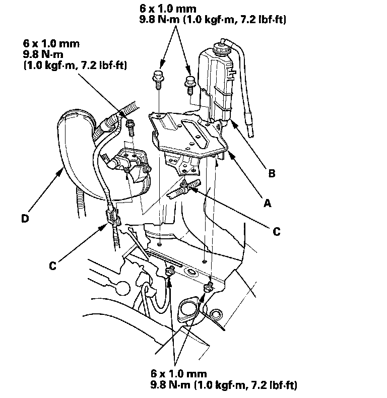 35. Install the harness clips (C) and the intake air duct (D).