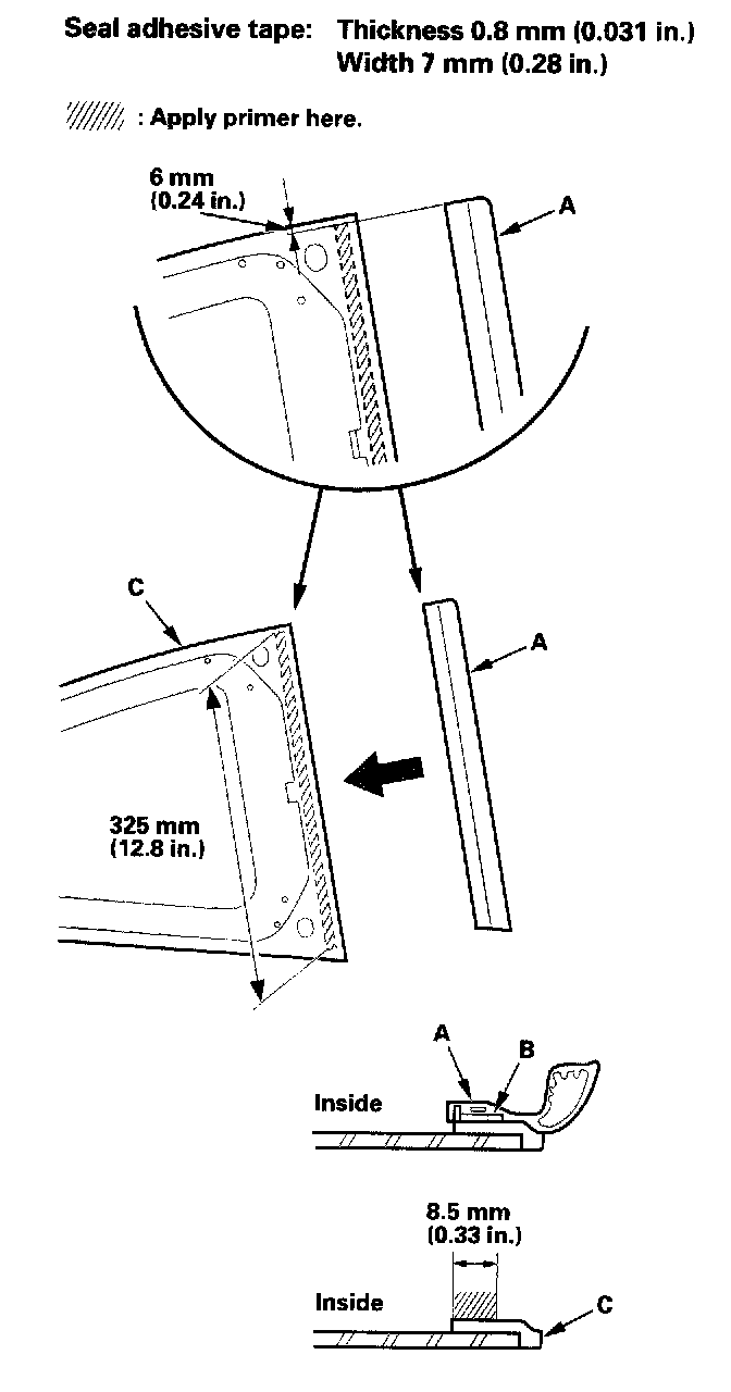 - Never touch the primed surfaces with your hands. If you do, the adhesive may not bond to the quarter glass properly, causing a leak after the quarter glass is installed.