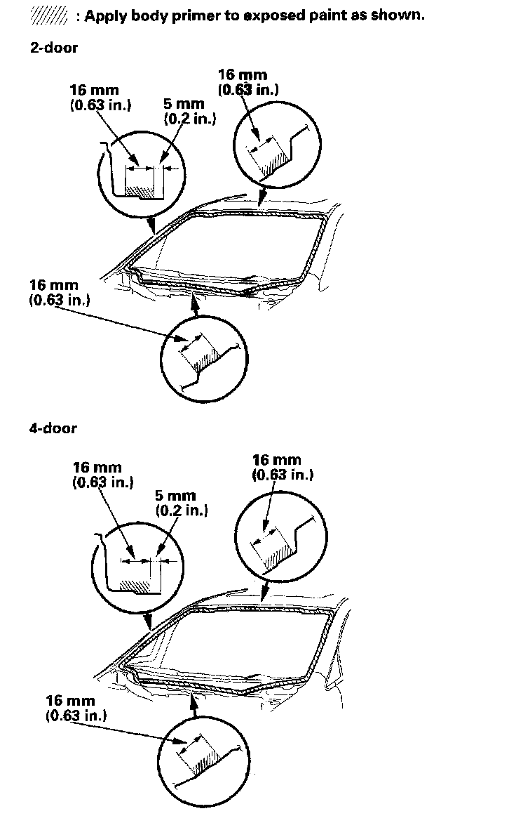 - Do NOT apply body primer to any remaining original adhesive on the flange.