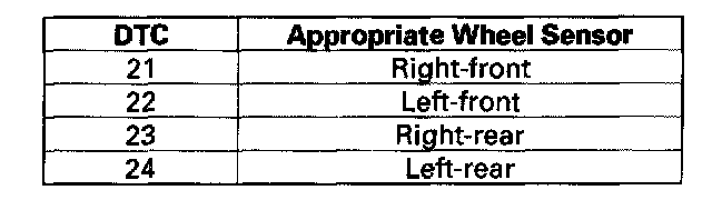 4. Check the appropriate wheel sensor (see table).