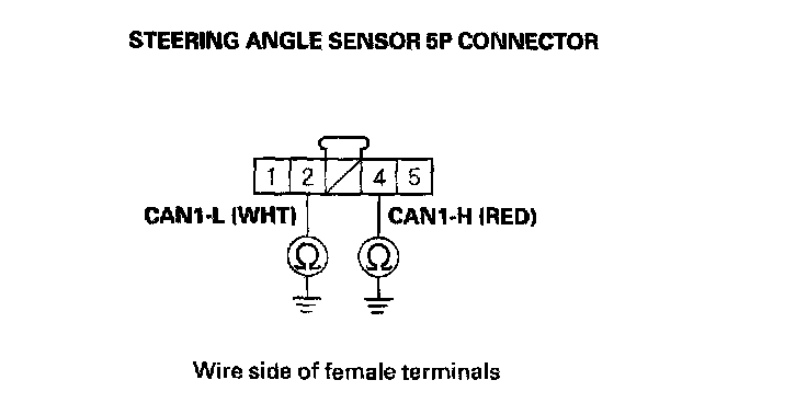 16. Check for continuity between the steering angle sensor 5P connector terminal No. 2, No. 4 and body ground individually.