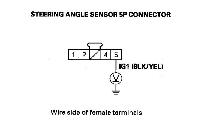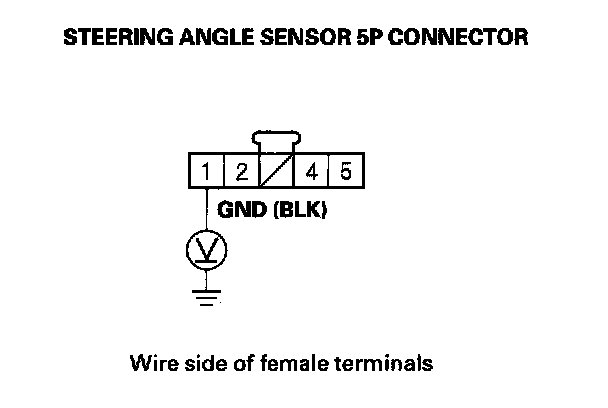 23. Measure the voltage between the steering angle sensor 5P connector terminal No. 1 and body ground.