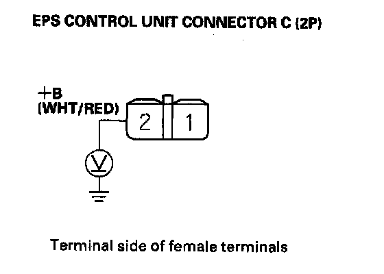 7. Measure the voltage between EPS control unit connector C (2P) terminal No. 2 and body ground.
