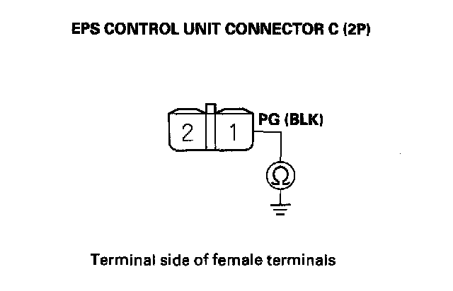 2. Check for continuity between EPS control unit connector C (2P) terminal No. 1 and body ground.
