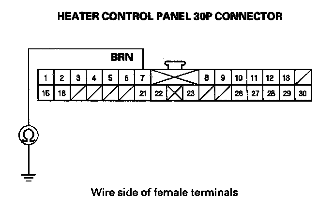 4. Check for continuity between the No. 7 terminal of the heater control panel 30P connector and body ground.