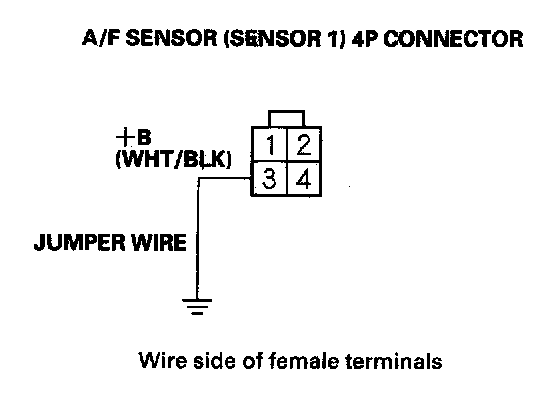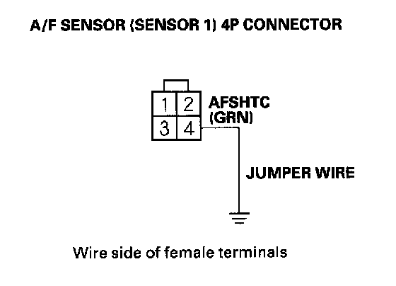 13. Connect A/F sensor (Sensor 1) 4P connector terminal No. 4 to body ground with a jumper wire.