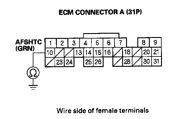 12. Check for continuity between ECM connector terminal A10 and body ground.