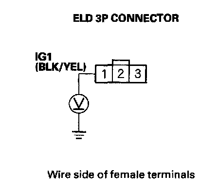 6. Measure voltage between ELD 3P connector terminal No. 1 and body ground.