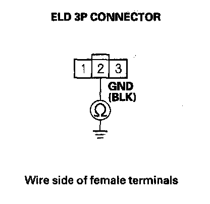 12. Check for continuity between ELD 3P connector terminal No. 2 and body ground.