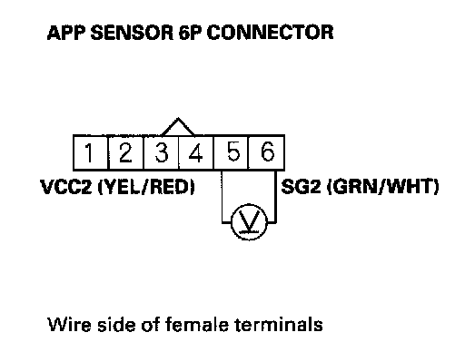 6. Measure voltage between APP sensor 6P connector terminals No. 5 and No. 6.