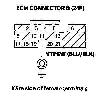 YES - Repair short in the wire between the ECM (B11) and the rocker arm oil pressure switch (VTEC oil pressure switch), then go to step 19.