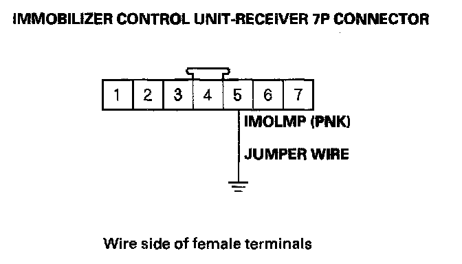 16. Using a jumper wire, connect the immobilizer control unit-receiver No. 5 (IMOLMP) terminal to ground.