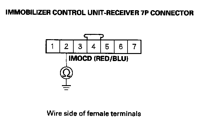 35. Check for continuity between the immobilizer control unit-receiver 7P connector No. 2 (IMOCD) terminal and body ground.