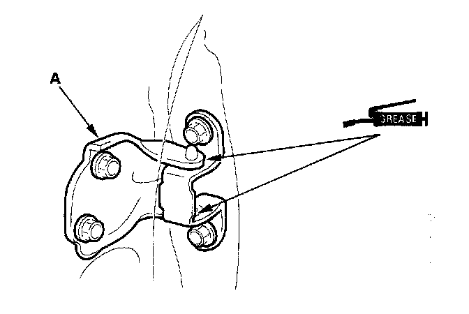 9. Apply multipurpose grease to the pivot portions of the hinges (A) indicated by the arrows.